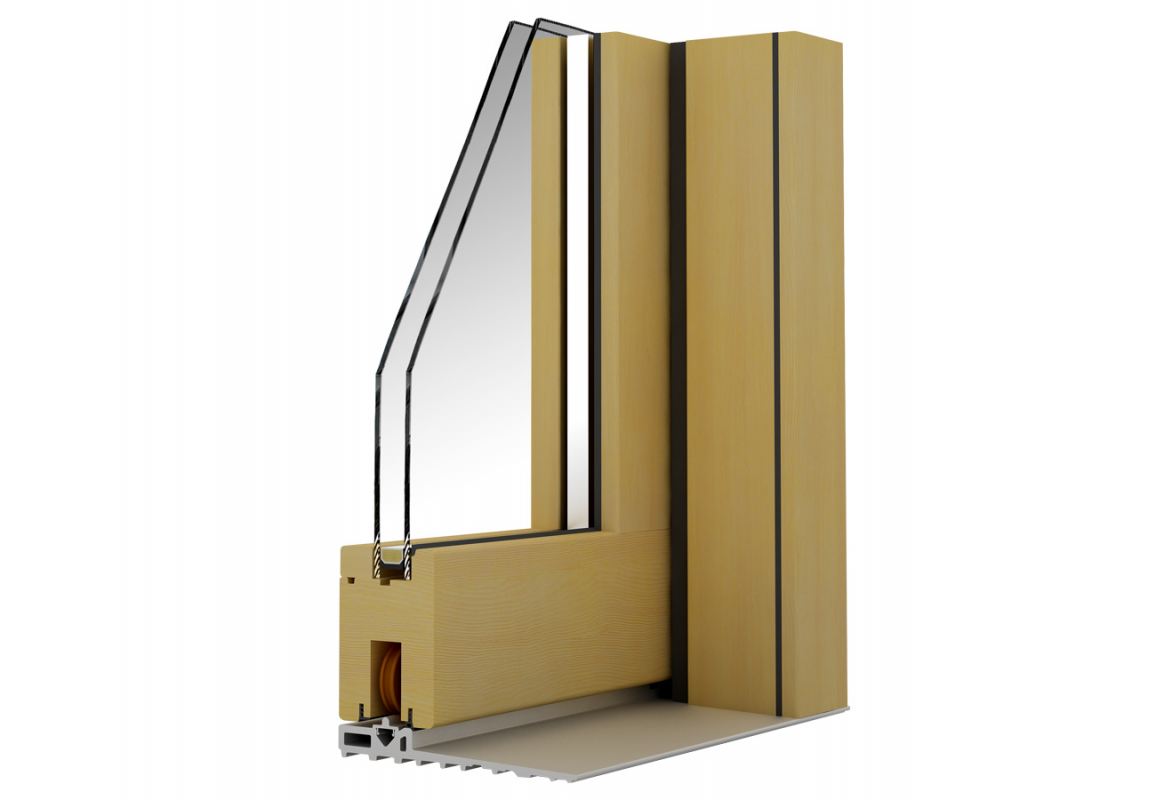 Alzante scorrevole con profili in legno lamellare costituito da almeno 3 tavole di legno, incollate con collante CLASSE D4 secondo norma EN 204. Fermavetro sagomato di diverse forme.